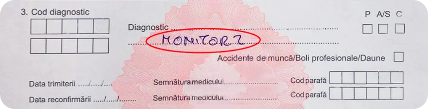 Biletele pentru monitorizare sunt eliberate de medicul specialist și sunt marcate cu „Monitor 1, 2… 8”. Mai jos este prezentată o imagine a unui astfel de bilet.